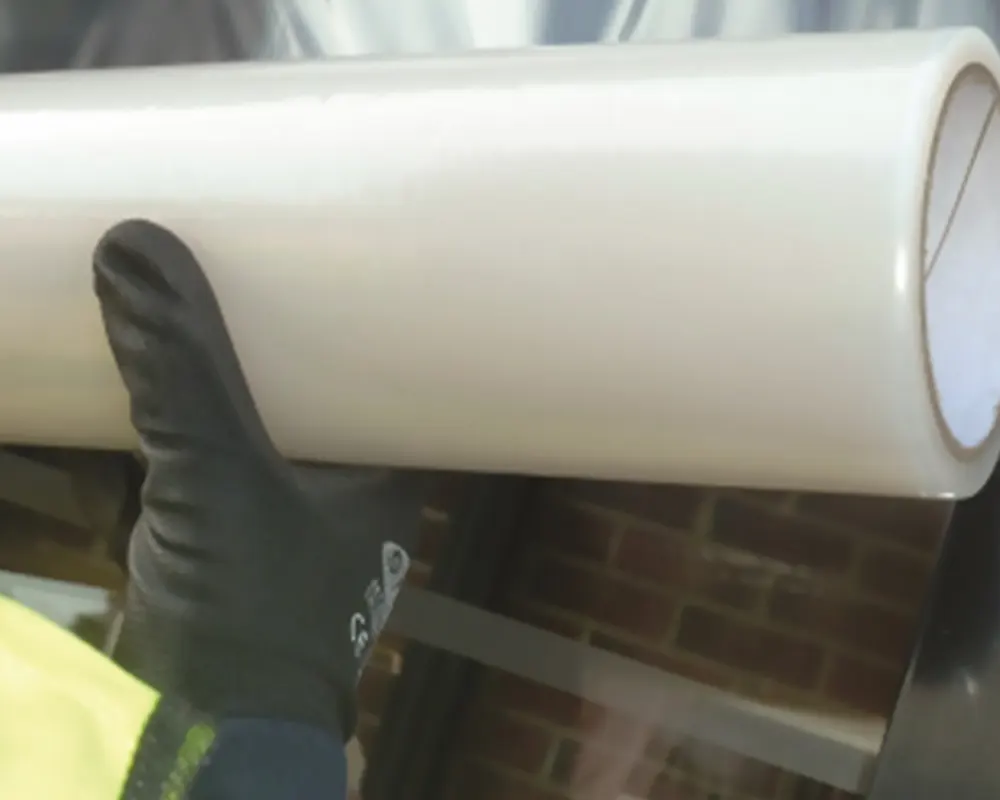 The low-tack adhesive backing adheres to most surfaces and the Window Protection Film will stay securely in place once applied. After use, it can be peeled away without leaving any residue. Unlike some alternative products, it has anti-UV properties to ensure that direct sunlight does not cause the adhesive to transfer onto the windows.