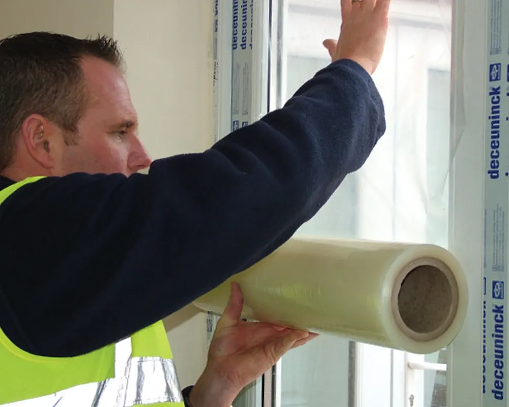 Window Protection Film comes on a roll that is 100% waterproof, lightweight, and forward wound to be applied using the Window Film Applicator or by hand. It performs as a protection screen from paint splatters, dust, and more during refurbishment, DIY, or Construction projects.