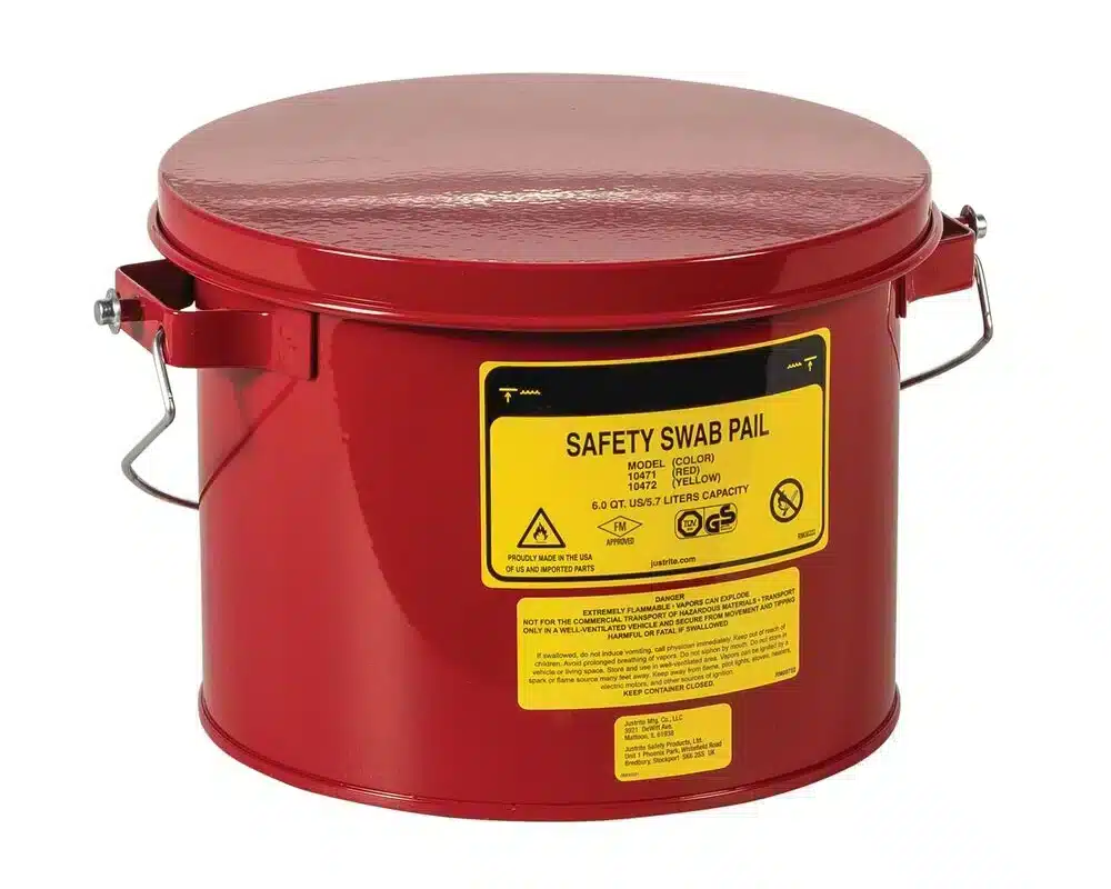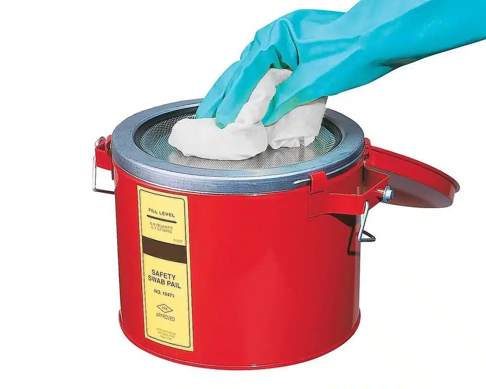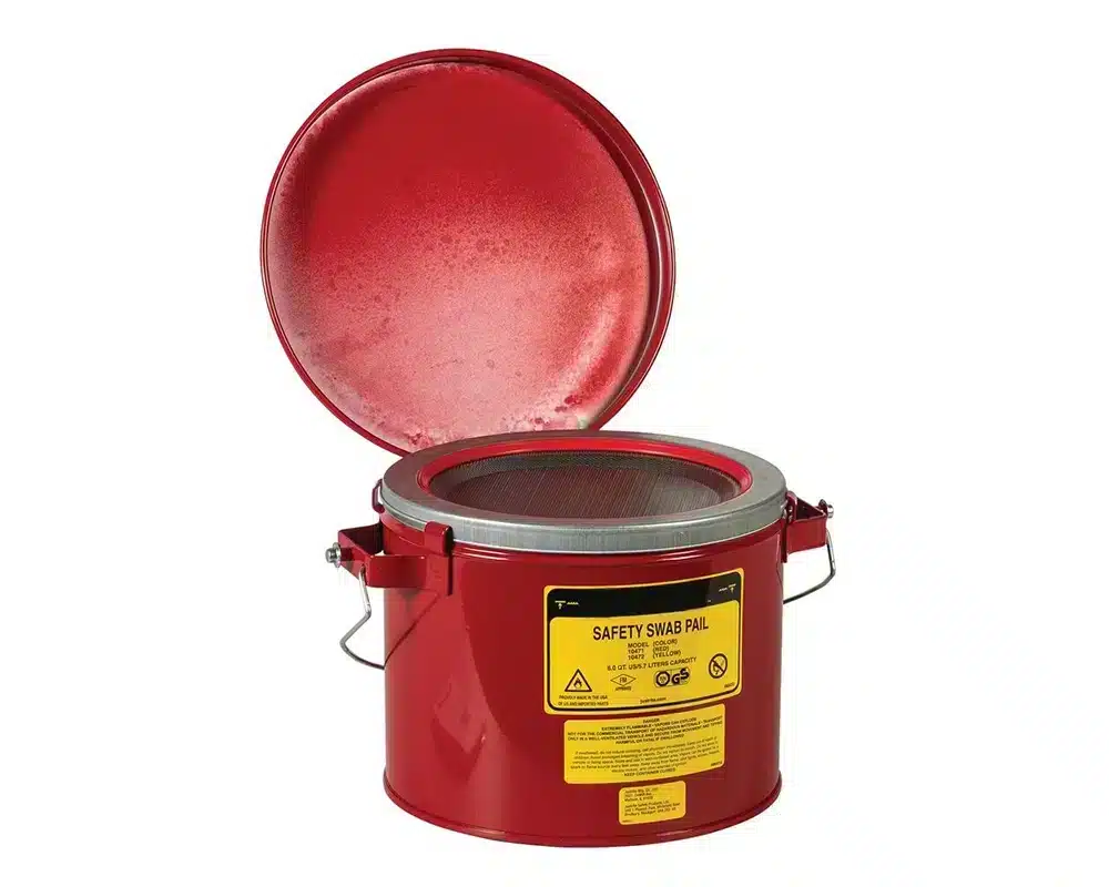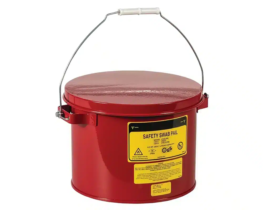 A bail handle makes the Steel Swab Pail easy to carry and perforated dasher keeps contents safe from ignition sources.