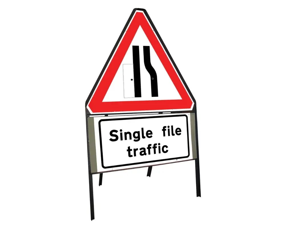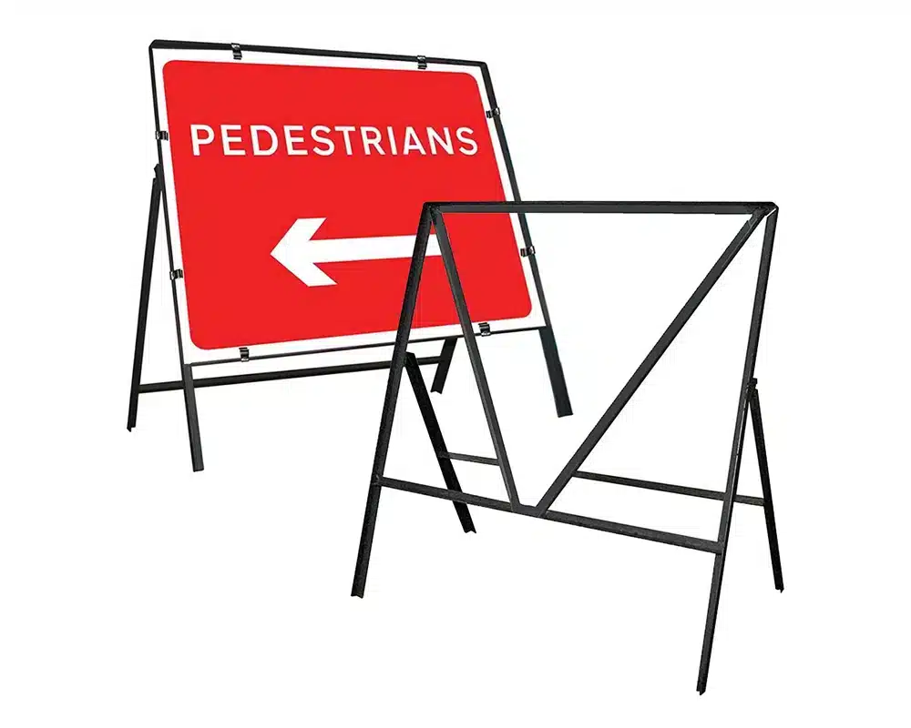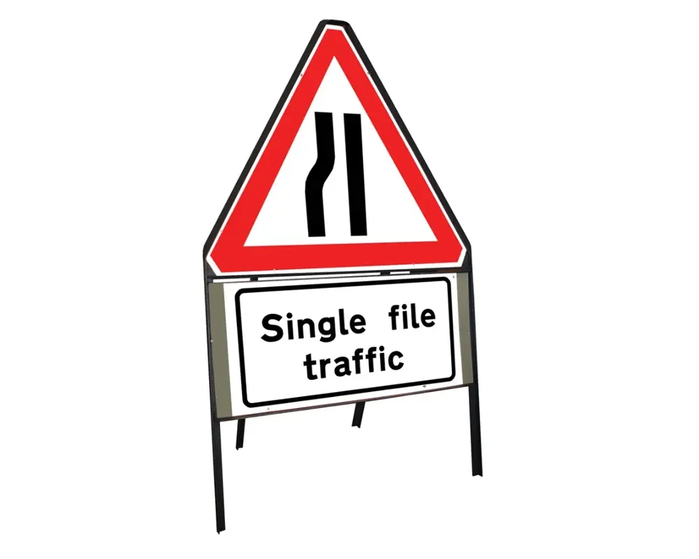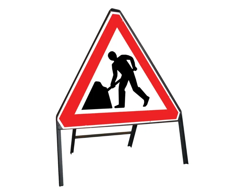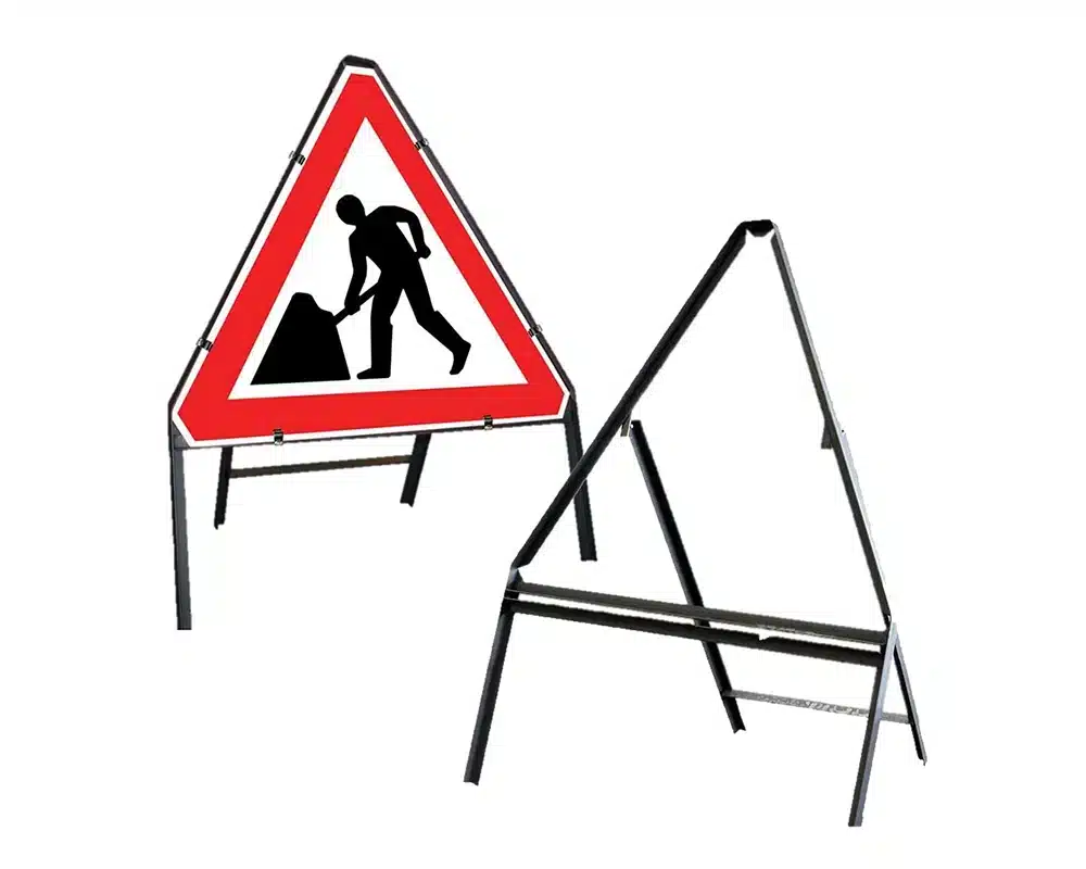 The Temporary Traffic Management Signs have foldable frames with interchangeable single or double-face sign panels that can be carried and propped up without difficulty beside work areas.