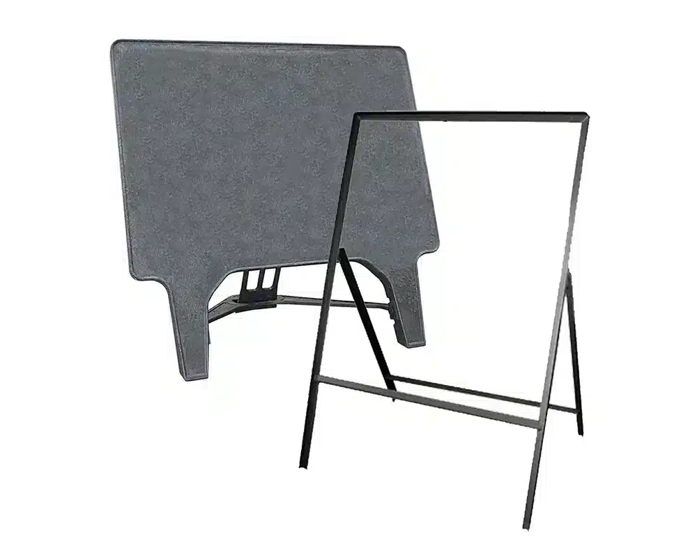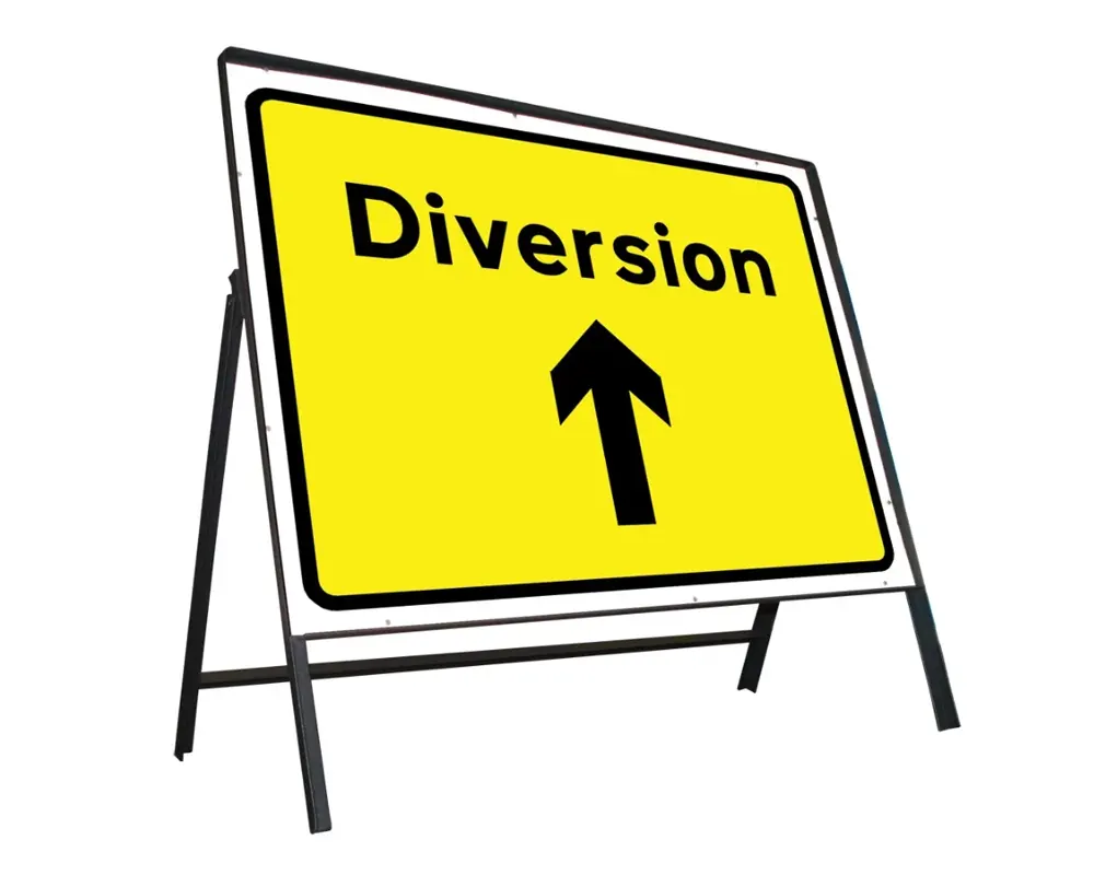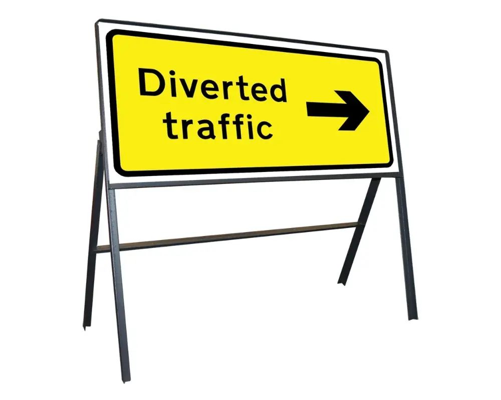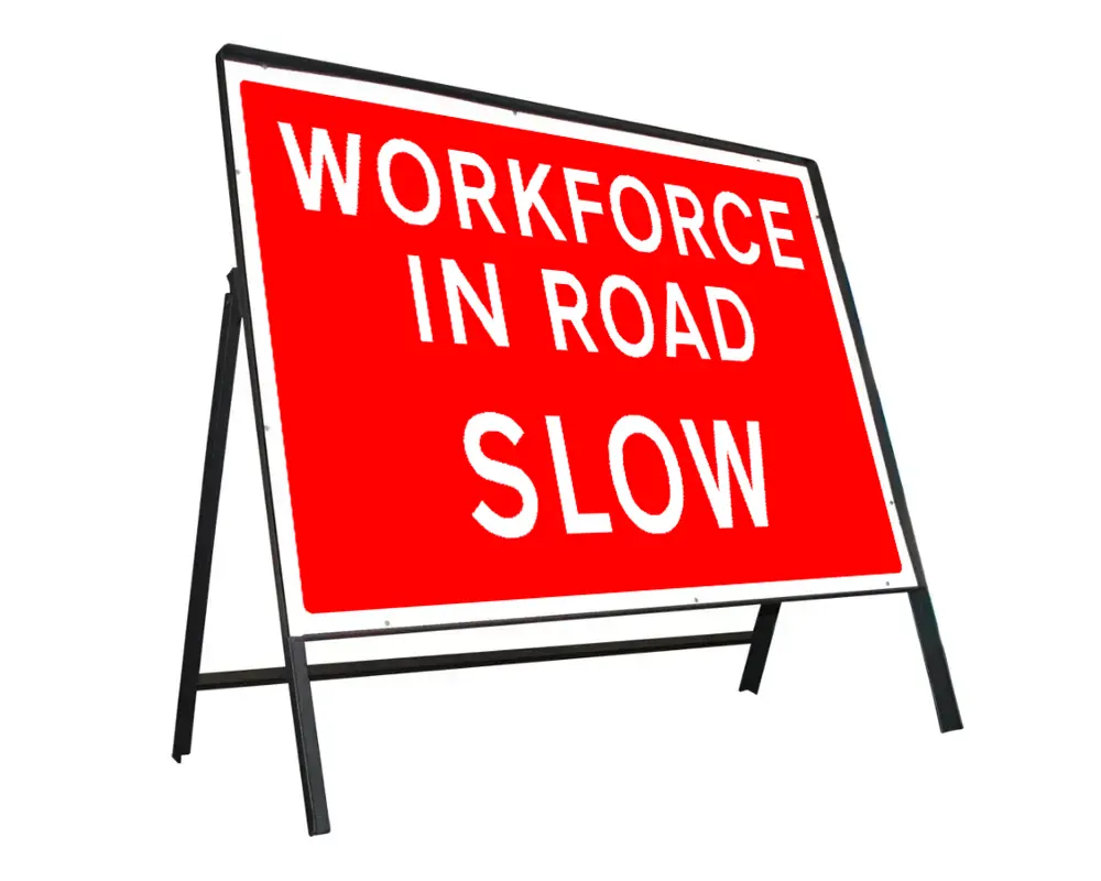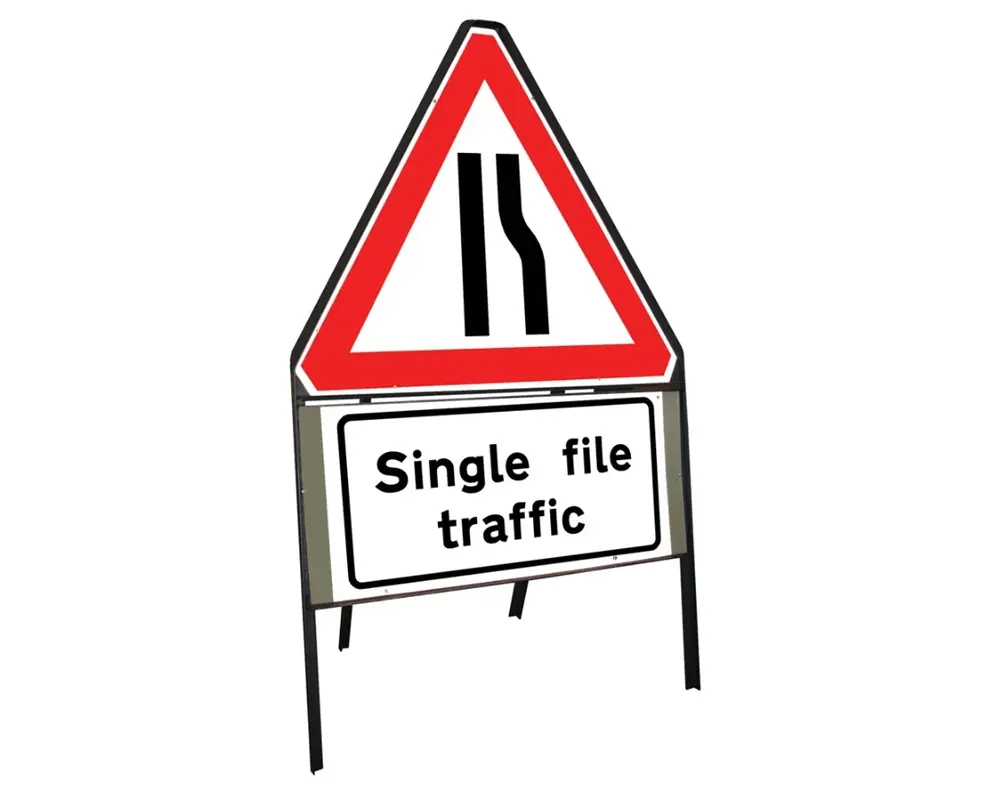The Temporary Traffic Management Signs have foldable frames with interchangeable single or double-face sign panels that can be carried and propped up without difficulty beside work areas.