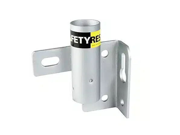 The Vertical Bracket fixes temporary Edge Protection Barrier is attached to the edge of the concrete using two reusable screw anchors.