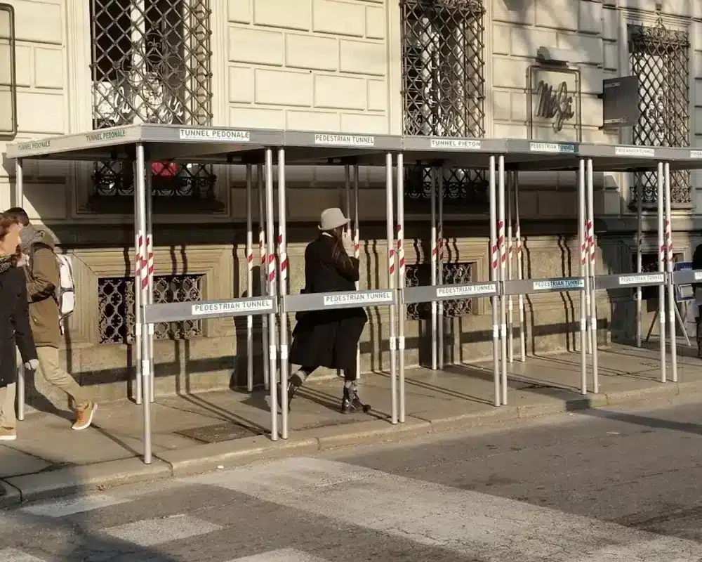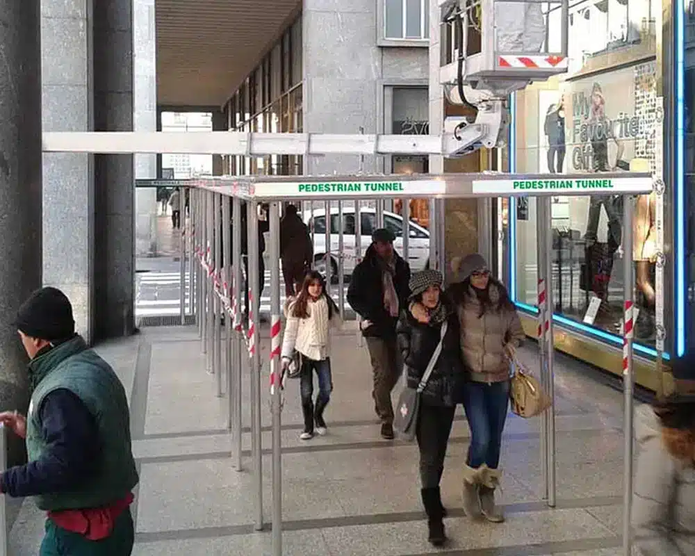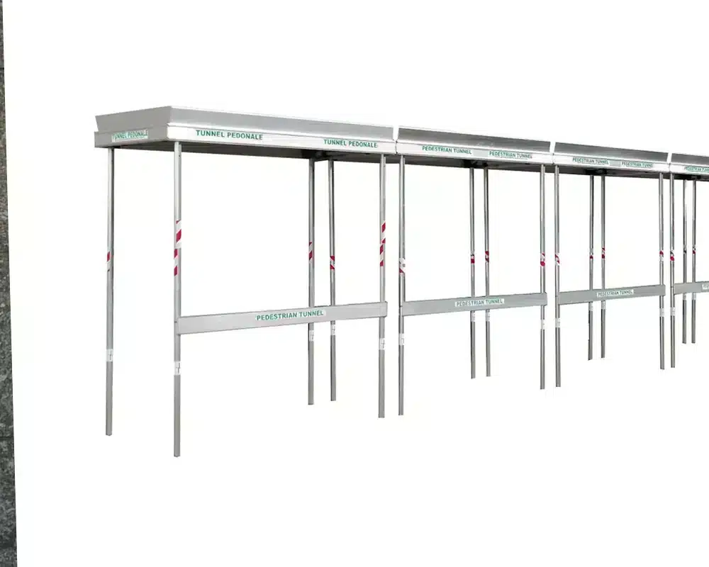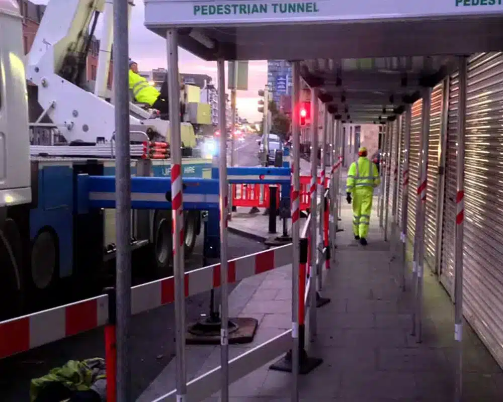 The Pedestrian Tunnel protects passers-by from falling debris, tools, or materials whilst contractors work overhead.