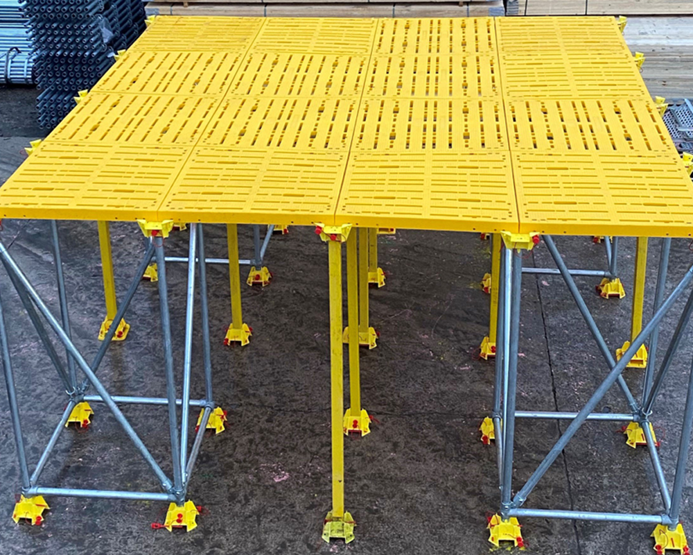 - Quicker to install than a birdcage scaffold or metal decking systems