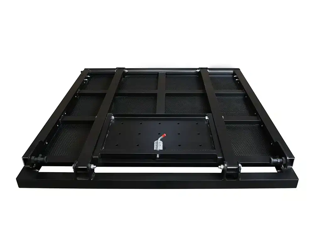 The system features an interlocking area between the vertical mast and floor frame to prevent uplift, along with an extruded anti-slip heavy-duty ramped nose, reduced height support struts and integral safety steps.