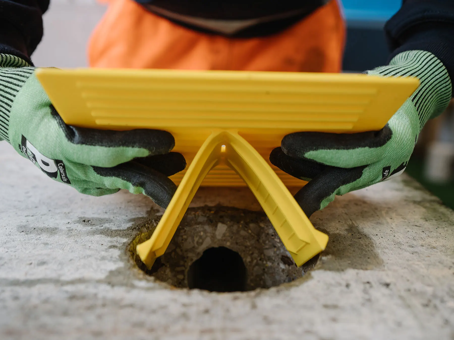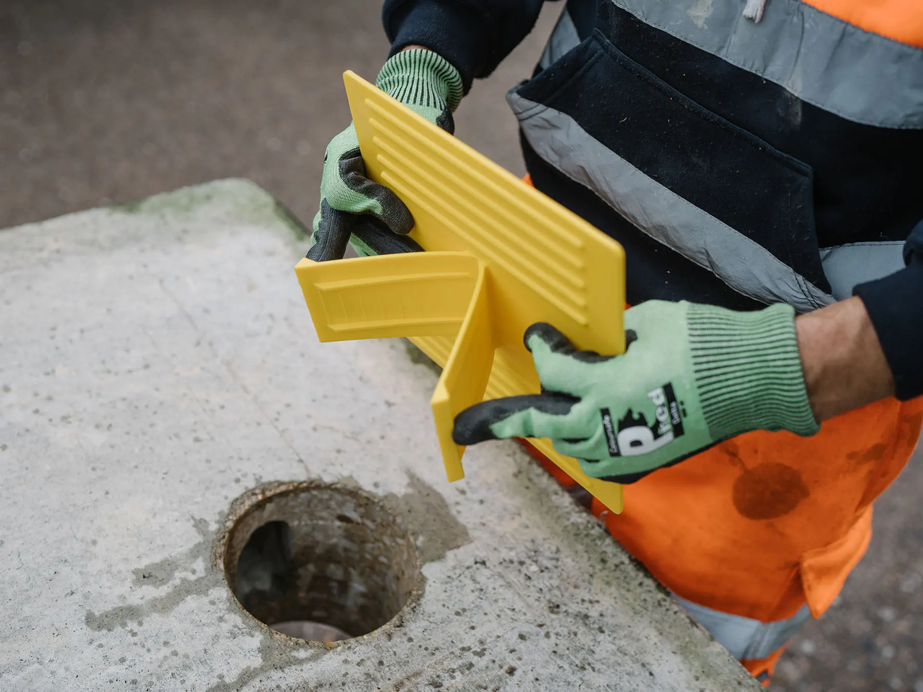 No cutting is required, as the product is fully adaptable and includes additional safety features such as high-visibility colours and an anti-slip surface. Furthermore, the nonporous material prevents the build-up of bacteria, supporting a cleaner and safer work environment. The small Hole cover covers a diameter of 200mm and the Large Hole Cover covers a diameter of 300mm.