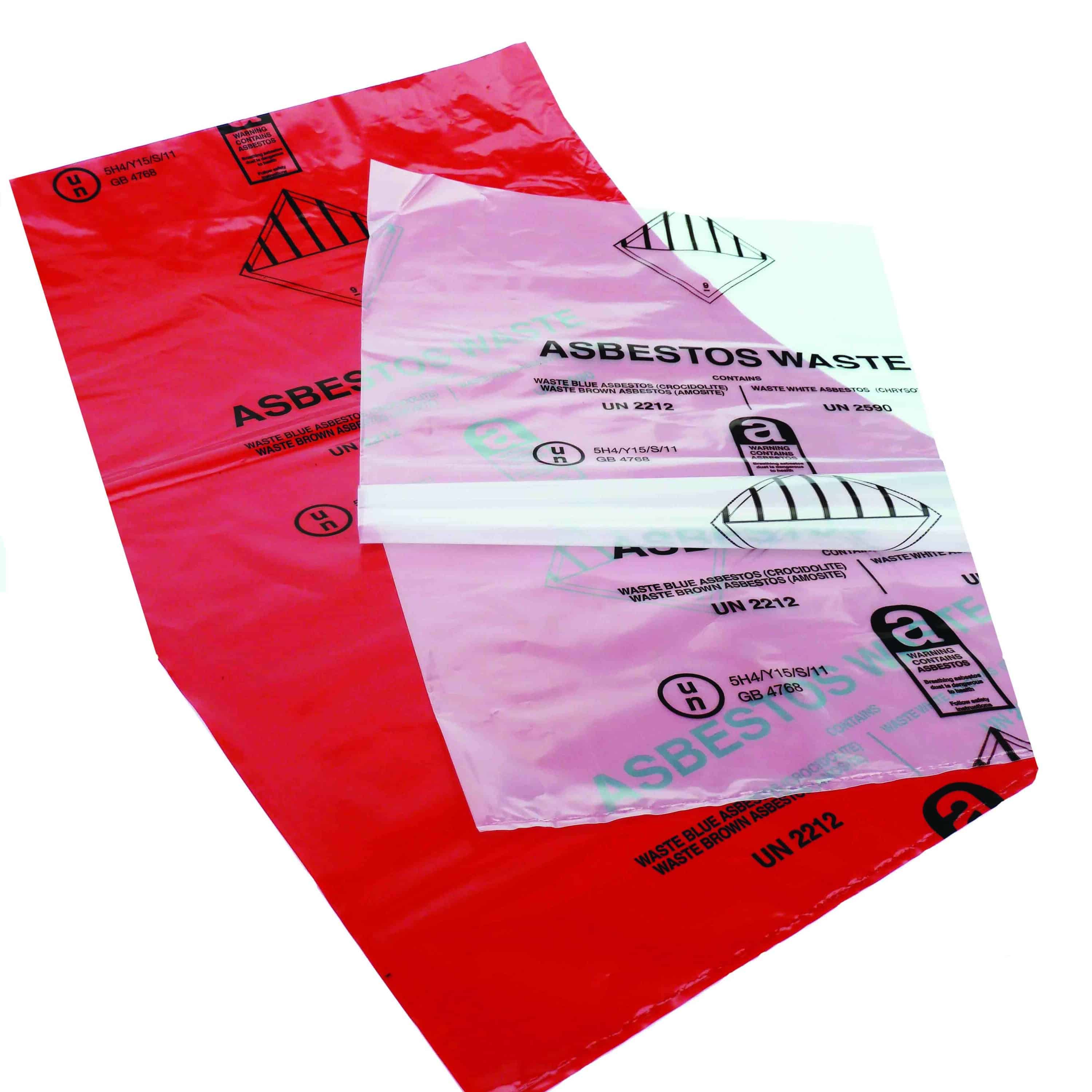 Waste is wrapped in the red asbestos sack and then placed into the clear asbestos sack for health and safety.