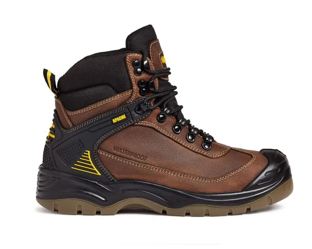The Apache Ranger All Terrain Boot is a good all-around waterproof safety boot available in a full range of sizes and two colourways.